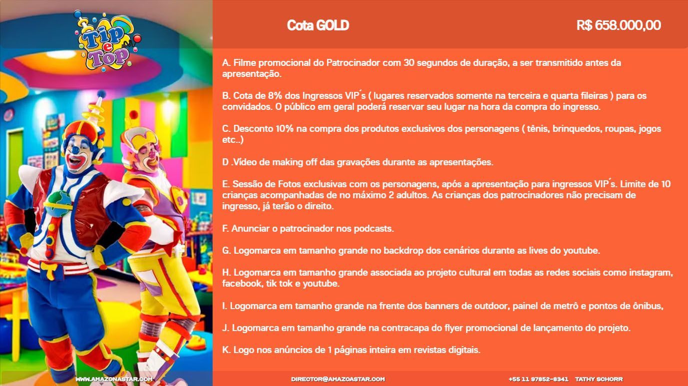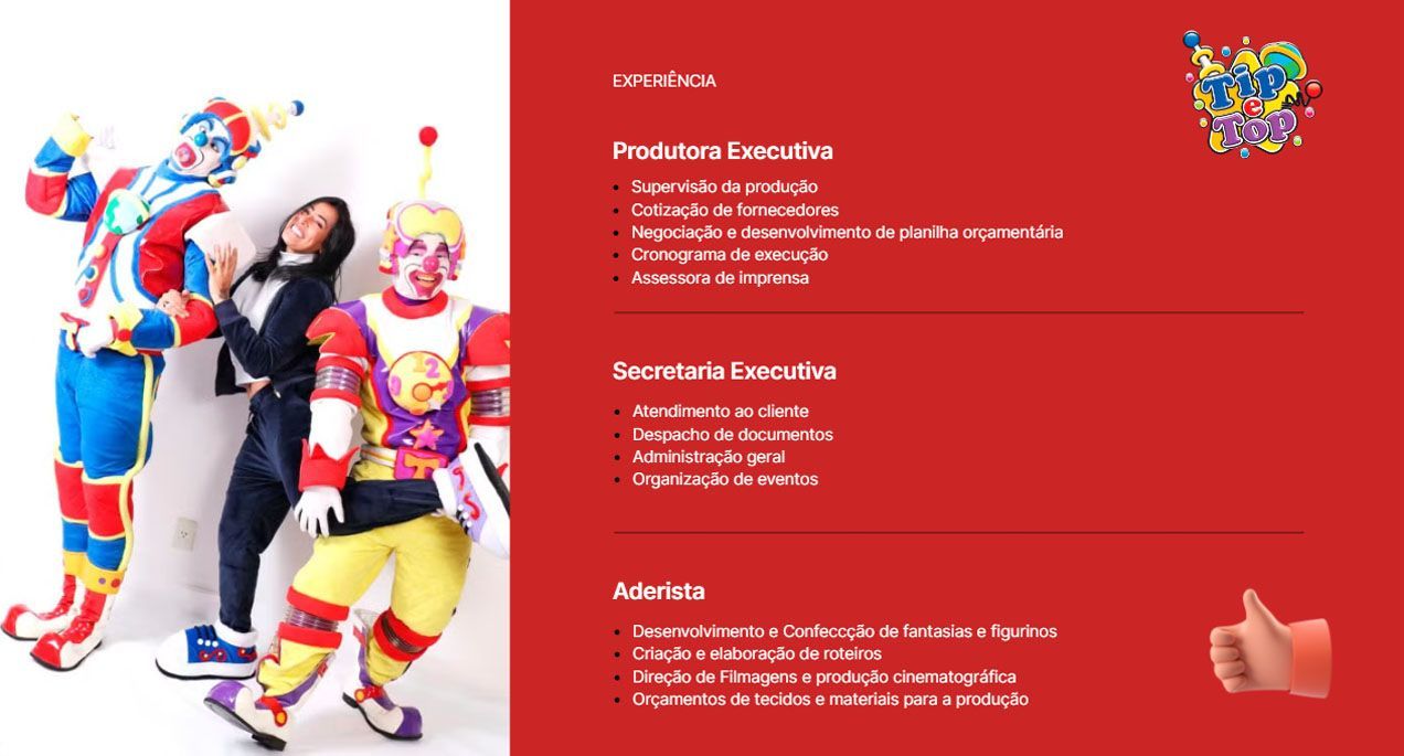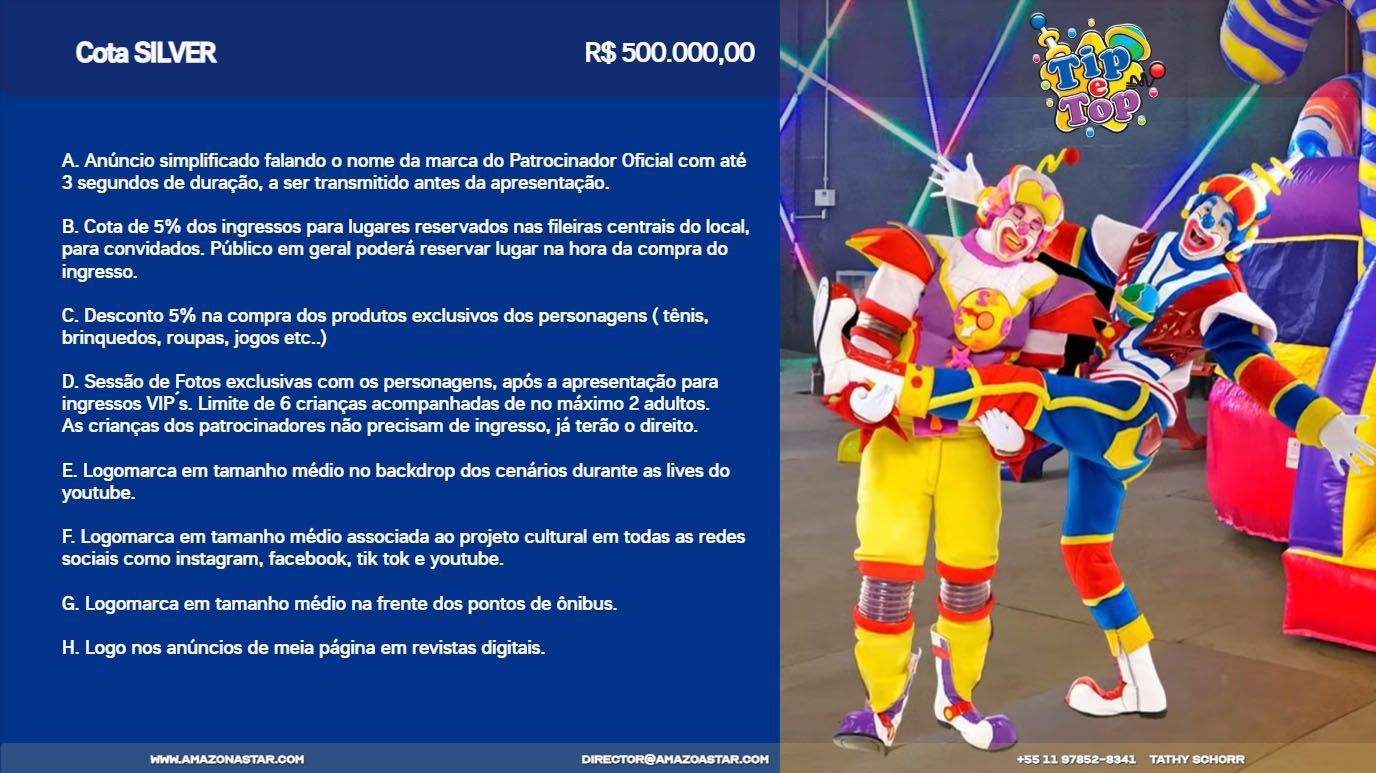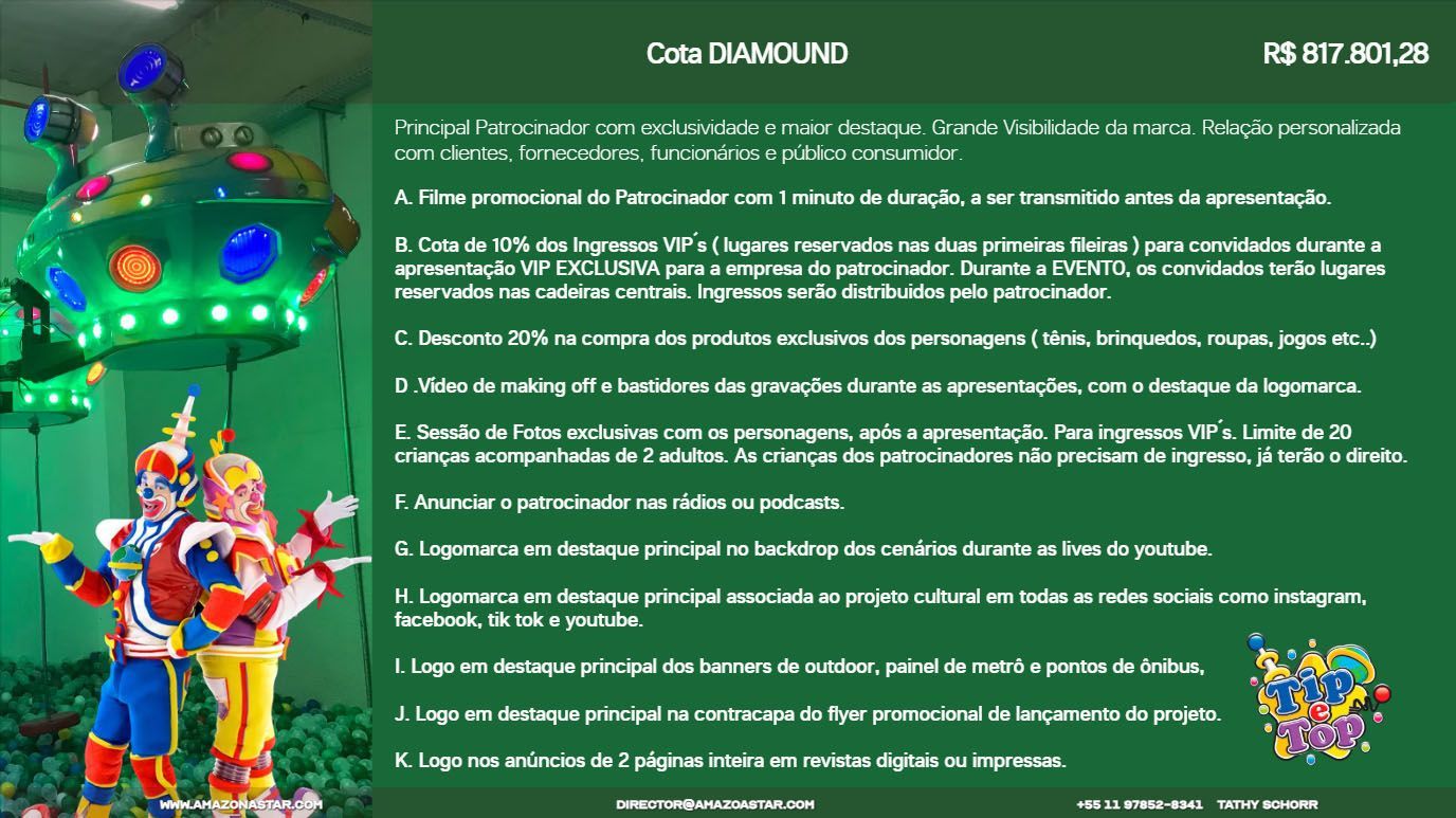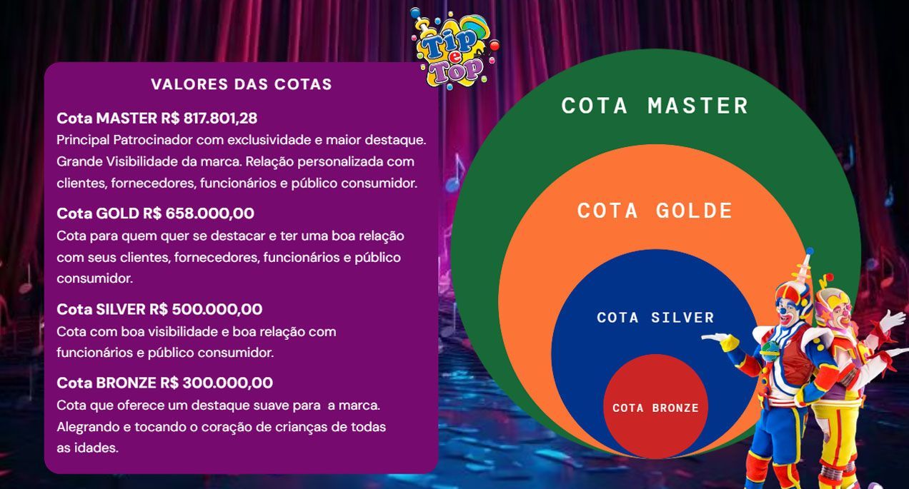 TIP TOP - O Musical fazem parte de um espetáculo teatral musical com dramaturgia, danças e canções com temática de circo que percorre as cidade e bairros de todo o país.